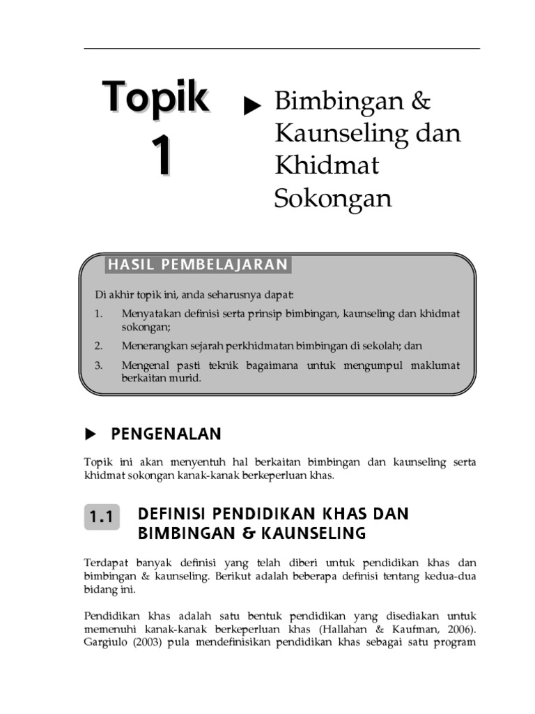 Topik 1 Bimbingan Dan Kaunseling Dan Khidmat Sokongan Pdf