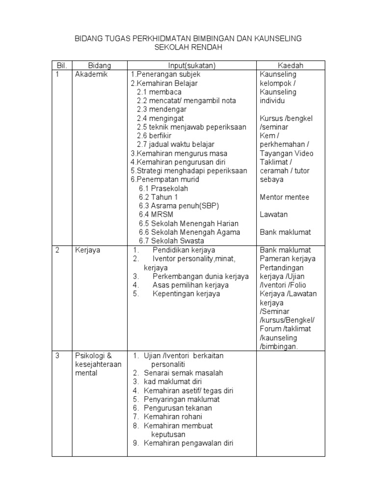 Bidang Tugas An Bimbingan Dan Kaunseling Pdf